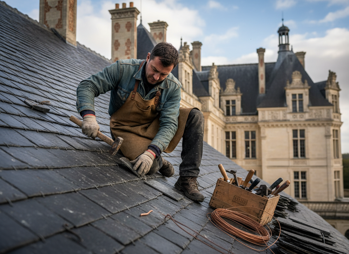 L'ardoisier est un artisan spécialisé dans la pose et la restauration des toitures en ardoise. Ce métier d'exception demande une grande habileté manuelle et une connaissance approfondie de ce matériau noble et durable. Travaillant souvent sur des bâtiments patrimoniaux, l'ardoisier perpétue un savoir-faire ancestral tout en répondant aux exigences modernes d'étanchéité. Chaque toit qu'il réalise est une œuvre d'art qui traverse les décennies.